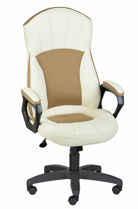 Кресло на колесах Менеджер ультра кожзам бежевый крестовина пластик, подлокотники пластик, механизм качания