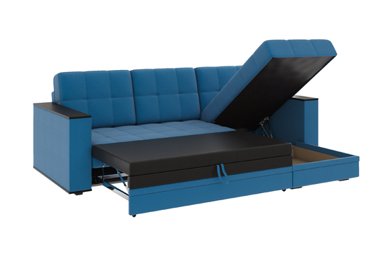 Диван-кровать угловой Тэдди 1504 композиция 3, букле Pique 009 синий, модульная система, сборка на любую сторону