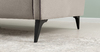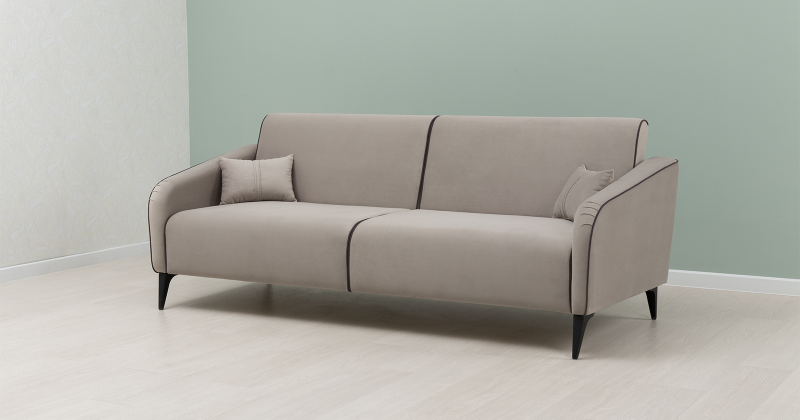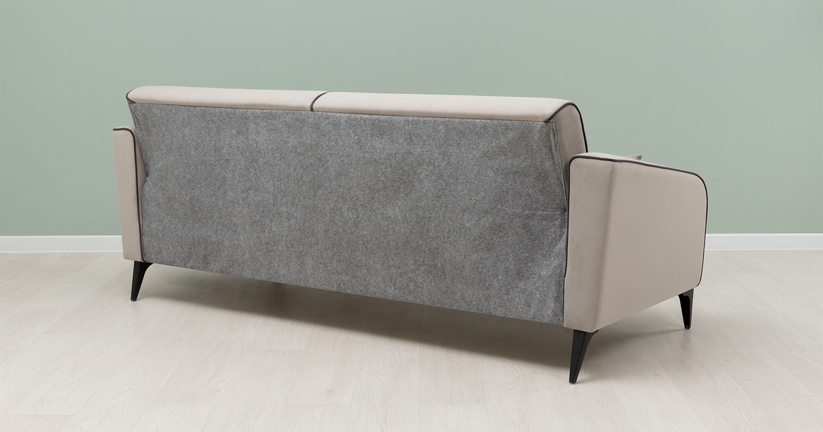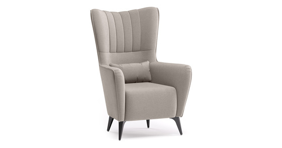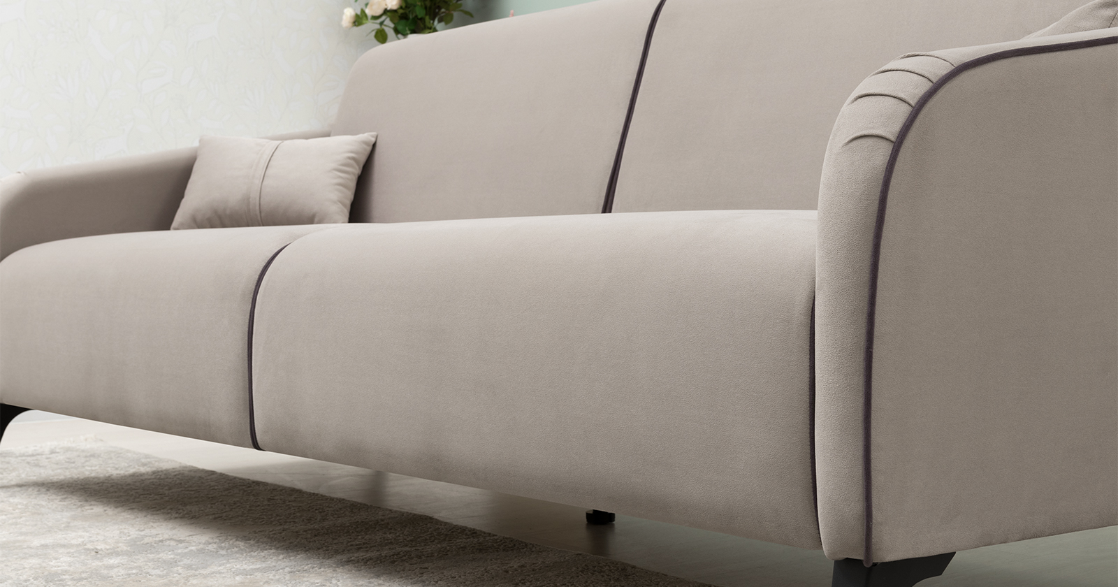 Спинка и сиденье разделяются пополам двойным кантом по центру и одинарным по краям сидения, для придания одной единой формы. Подлокотники с изгибом на лицевой стороне и мягкими закругленным углом со складками, с выраженным контрастным ровным кантом по внешнему контуру изделия и изогнутой линией канта.