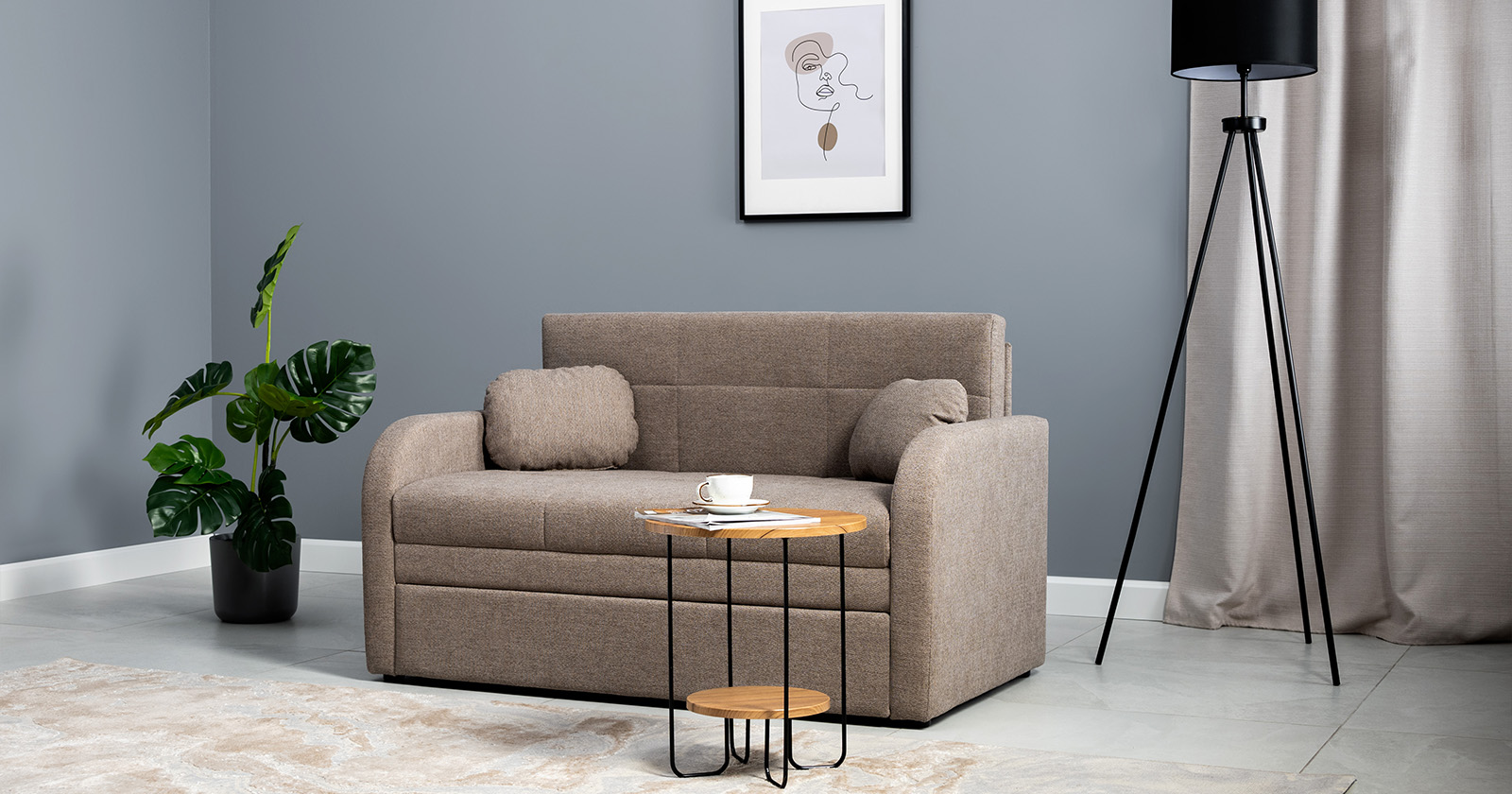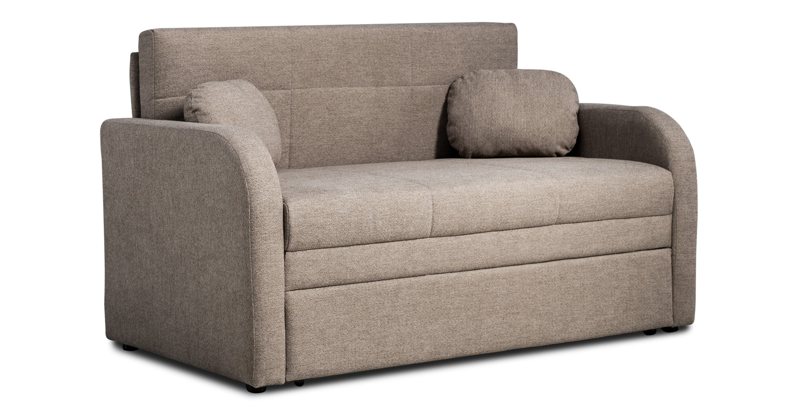 Коллекция выполнена в современном минималистичном стиле с мягкой обивкой из износостойкой ткани и декоративной стежкой, подчеркивающей геометрию форм. Механизм трансформации обеспечивает дополнительное спальное место, делая мебель не только эстетичной, но и максимально функциональной для небольших пространств.
