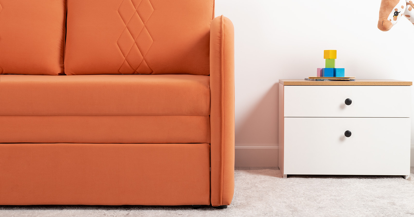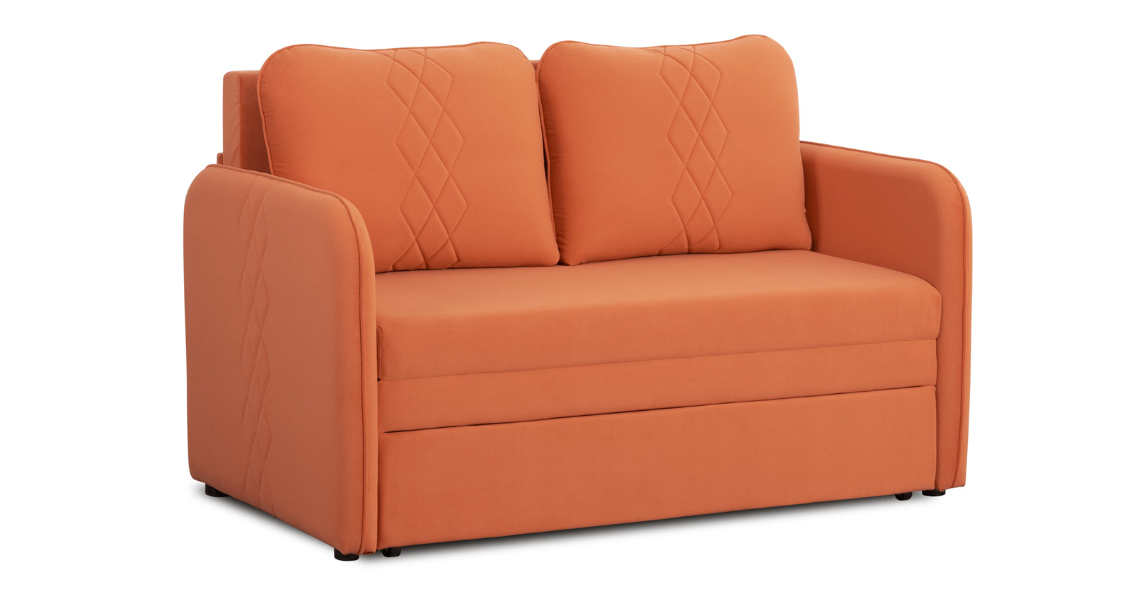 Стильный компактный диван для детской и гостиной. При своих скромных размерах он трансформируется в полноценное спальное место для детей и подростков. Лаконичный дизайн в виде декоративной стежки подчеркивает фактуру велюра, а небольшие размеры позволят разместить его в любом пространстве.