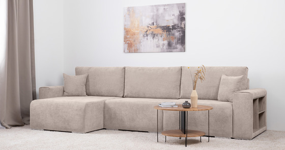 Диван-кровать угловой SMART 1 левый, велюр Velutto 05 бежевый (1Пф-2Т)