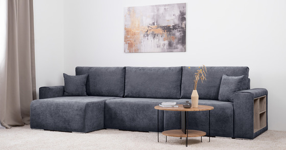 Диван-кровать угловой SMART 1 левый, велюр Velutto 19 темно-серый (1Пф-2Т)