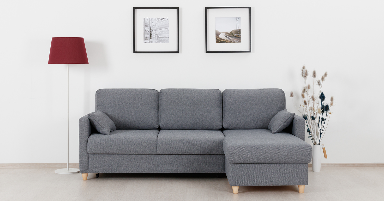 Диван-кровать угловой SMART 1 левый, велюр Velutto 19 темно-серый (1Пф-2Т)
