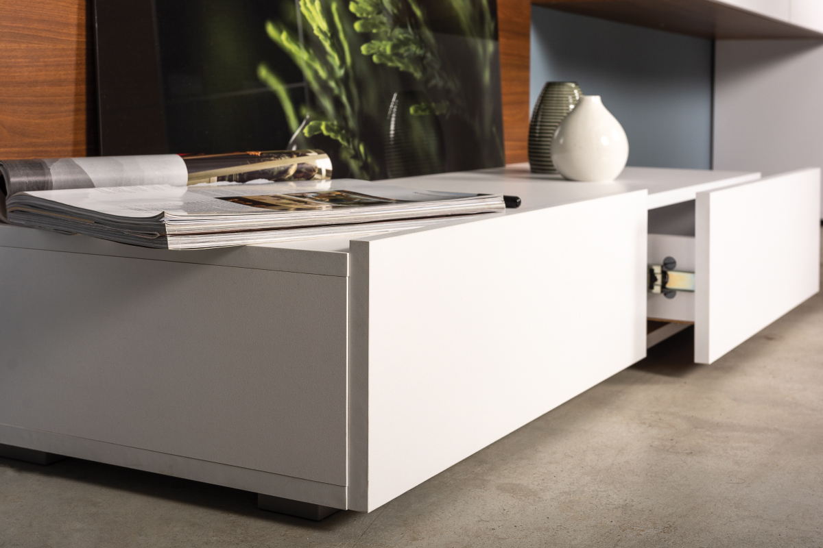 Тумба под ТВ в гостиную 13.267.03 белый PE шагрень, альберо, милк софт ПВХ