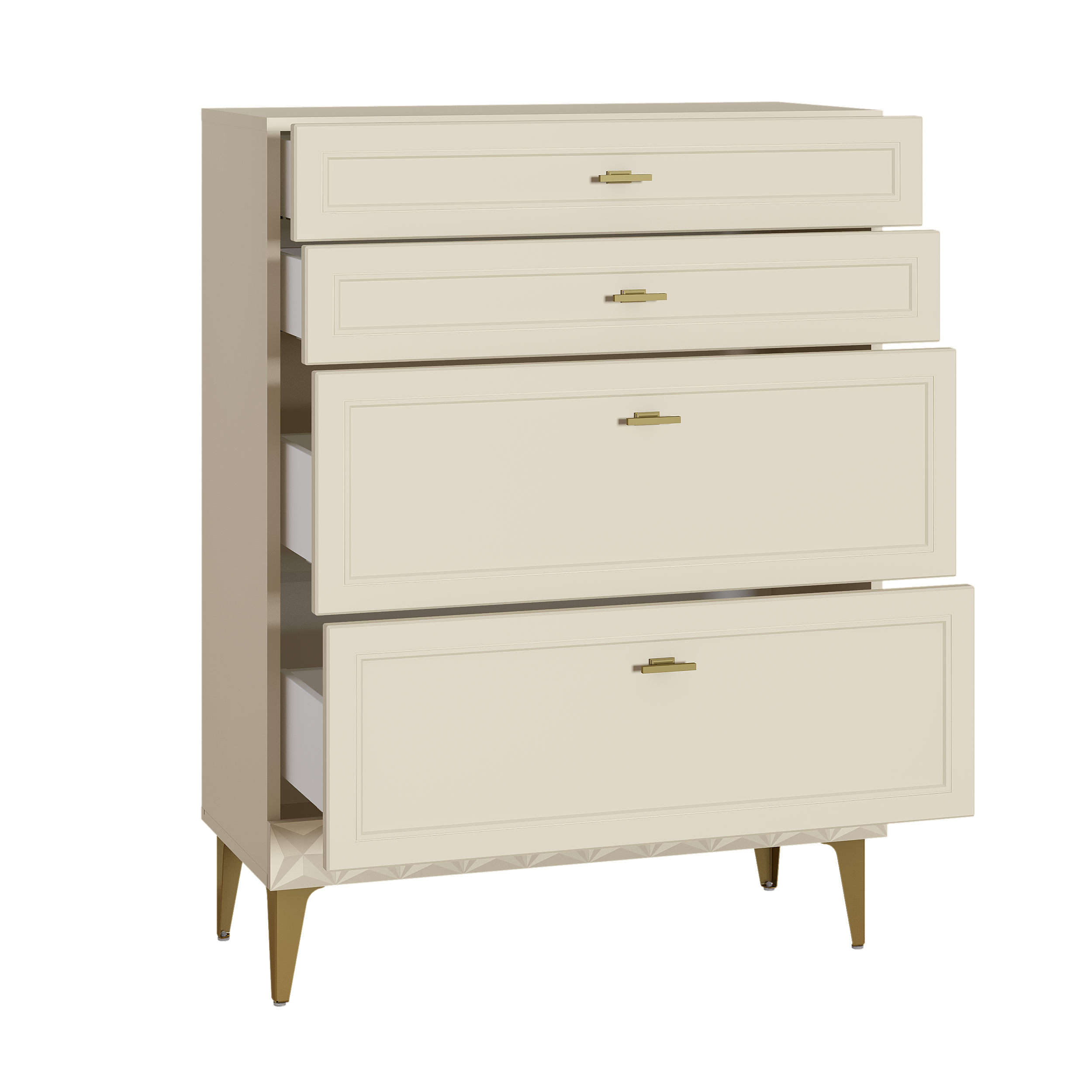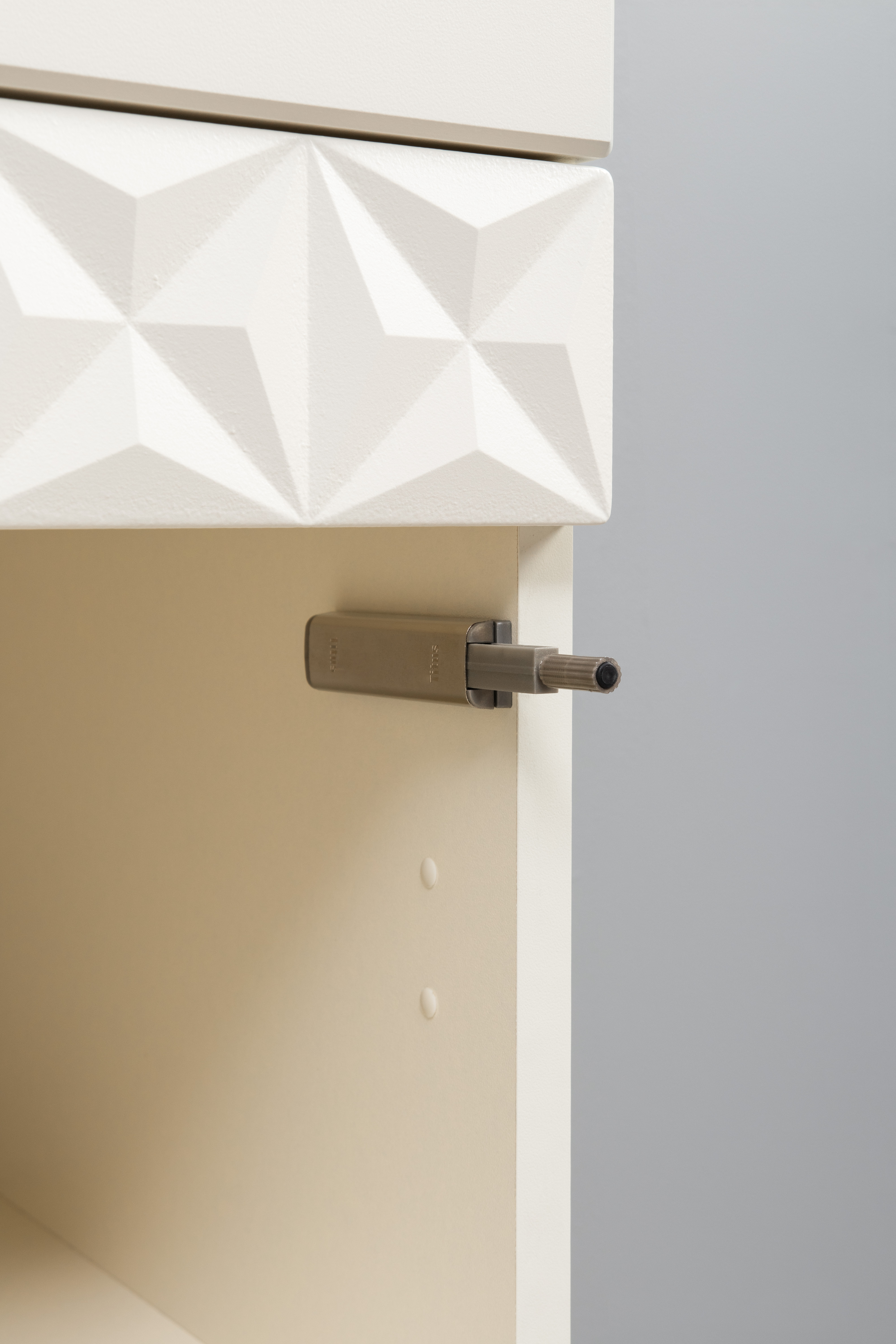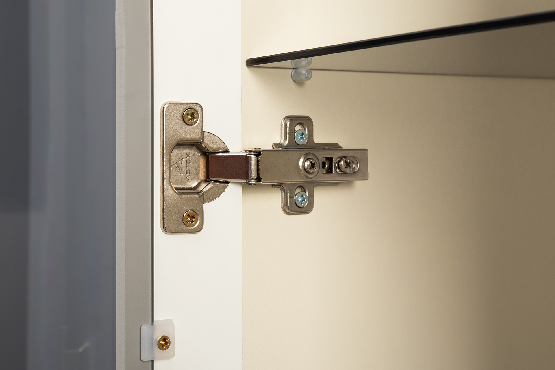 Изящные линии, глубокая фрезеровка фасадов из МДФ и благородные оттенки. Утончённая «Слоновая кость» и изысканная «Олива Шагрень» с глубоким зелёным тоном — создают атмосферу уюта, тепла и благородства. Металлические ручки и опоры золотого цвета придают мебели утончённый блеск, а петли и направляющие с доводчиками обеспечивают плавное и бесшумное закрытие фасадов.