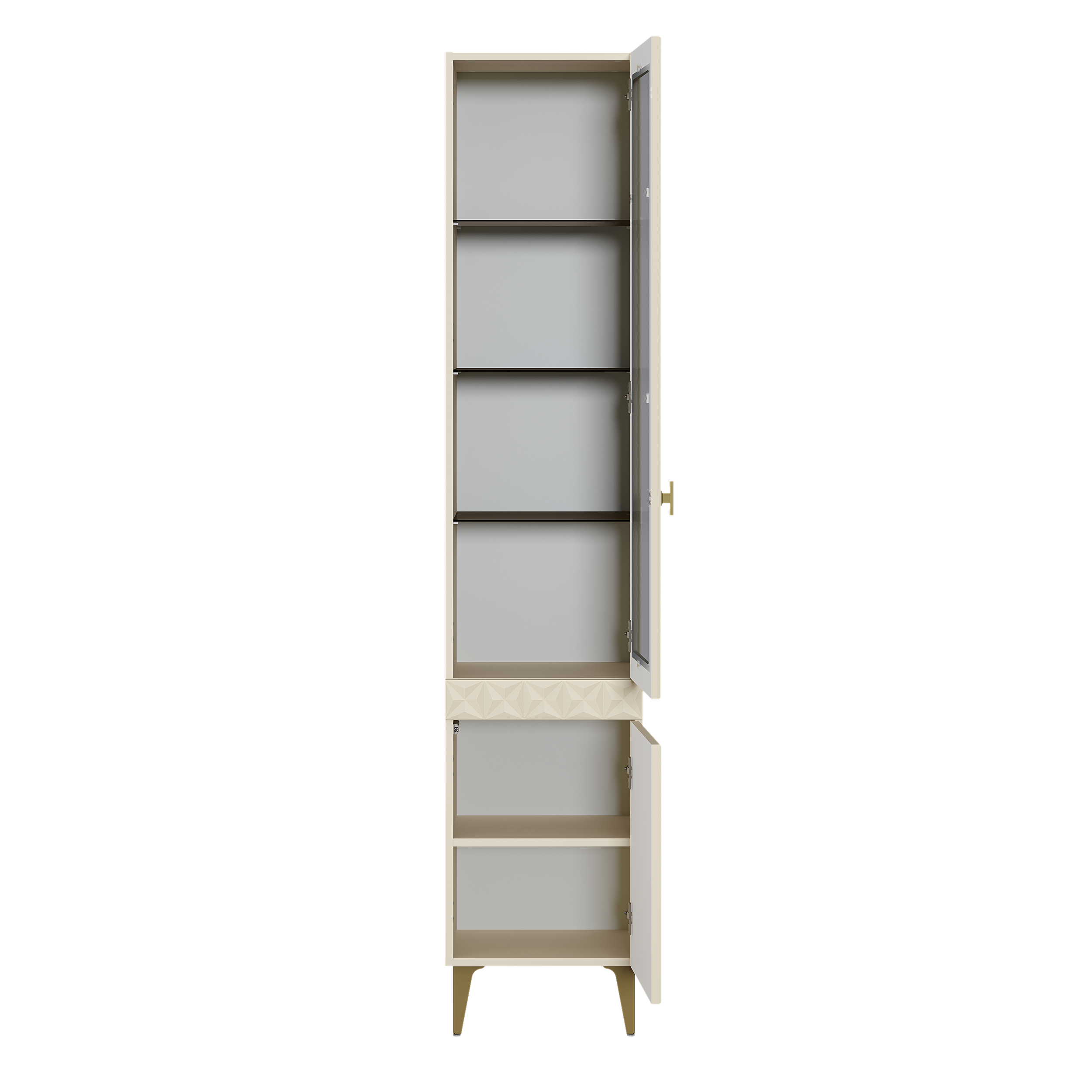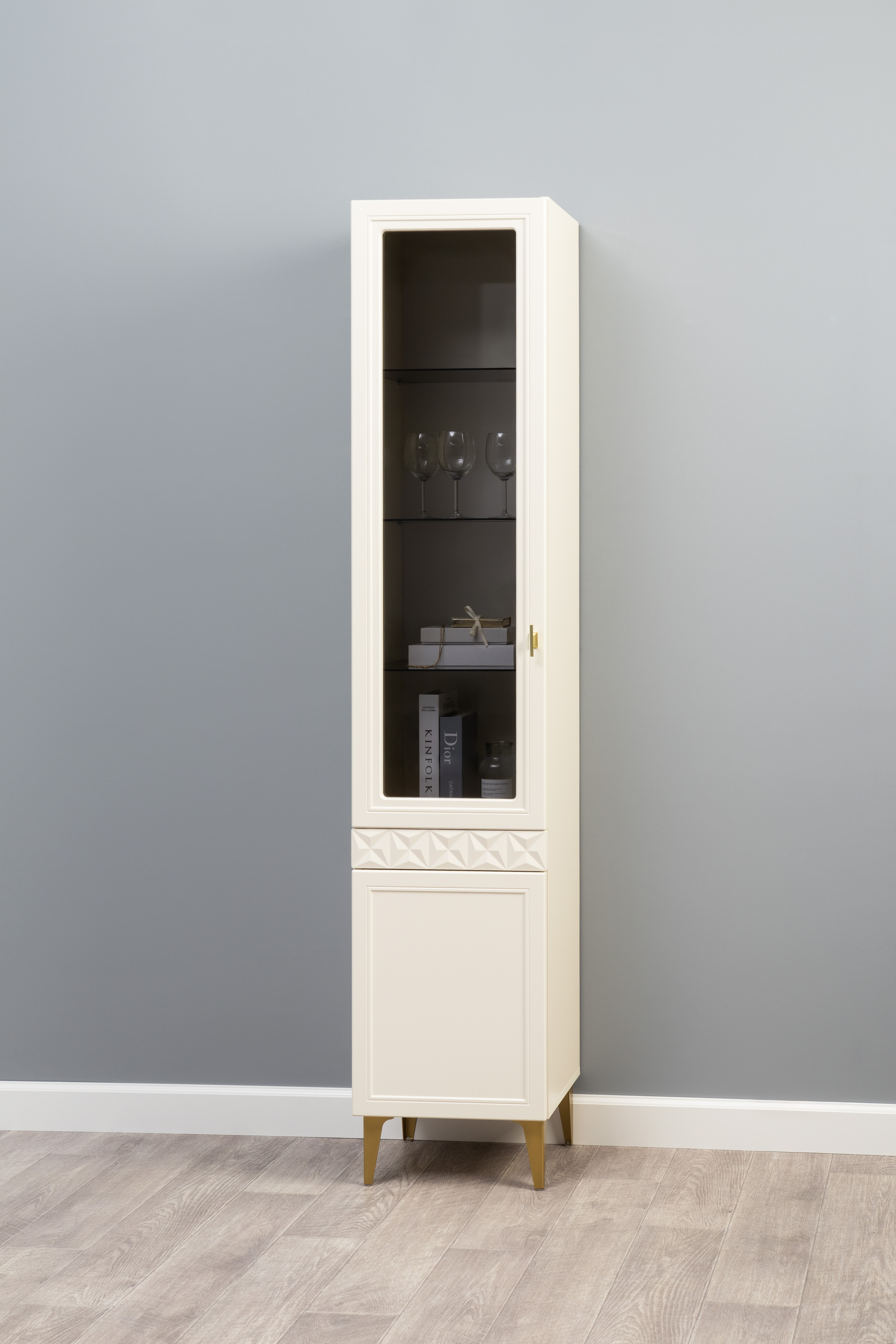 В коллекции представлены три типа витрин с тонированным закалённым стеклом, которые придают пространству лёгкость и свет. «Марион» — идеальное сочетание традиций и актуального дизайна в каждой детали.