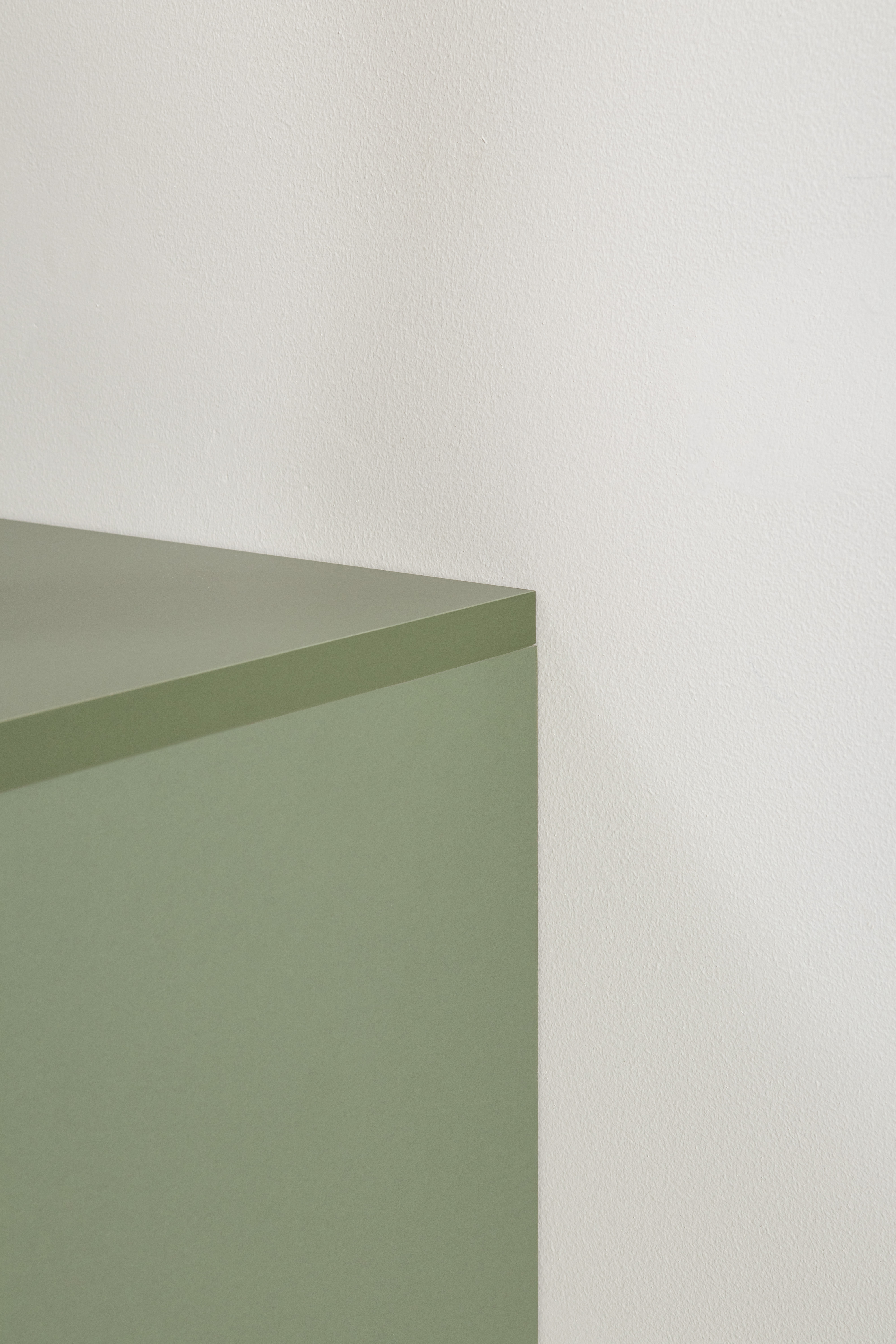 Гостиная Марион композиция 2 дымчатый зеленый K521, олива шагрень AG 1050 ПВХ, белый PE шагрень (собирается на любую сторону)