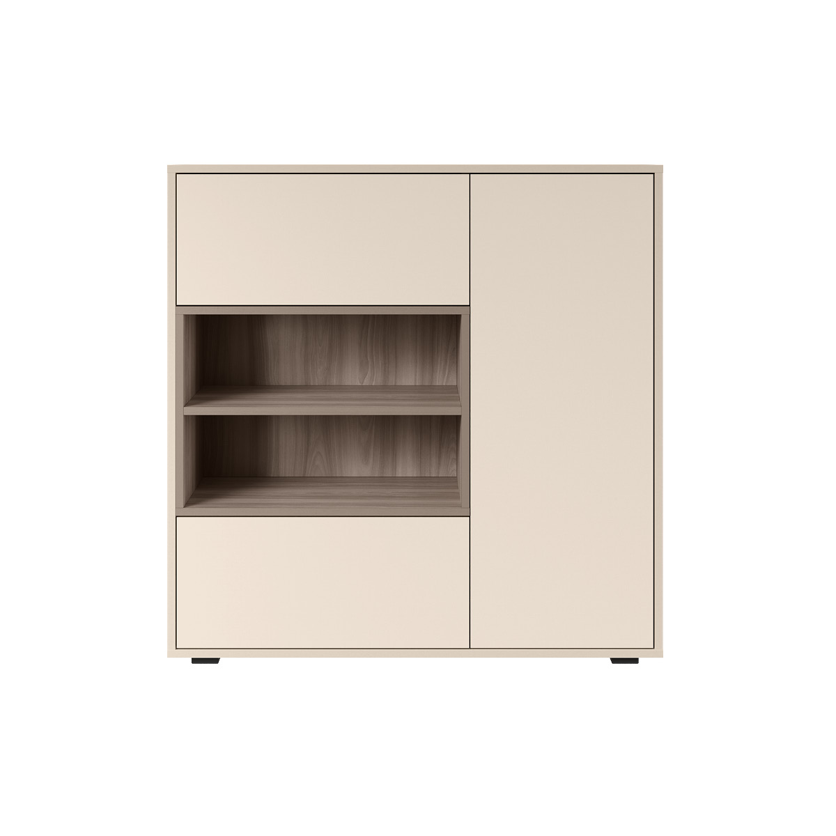 Комод Тайл 16.237 сатин 7045 SU, эмили блаш U9135, белый PE шагрень, собирается на любую сторону