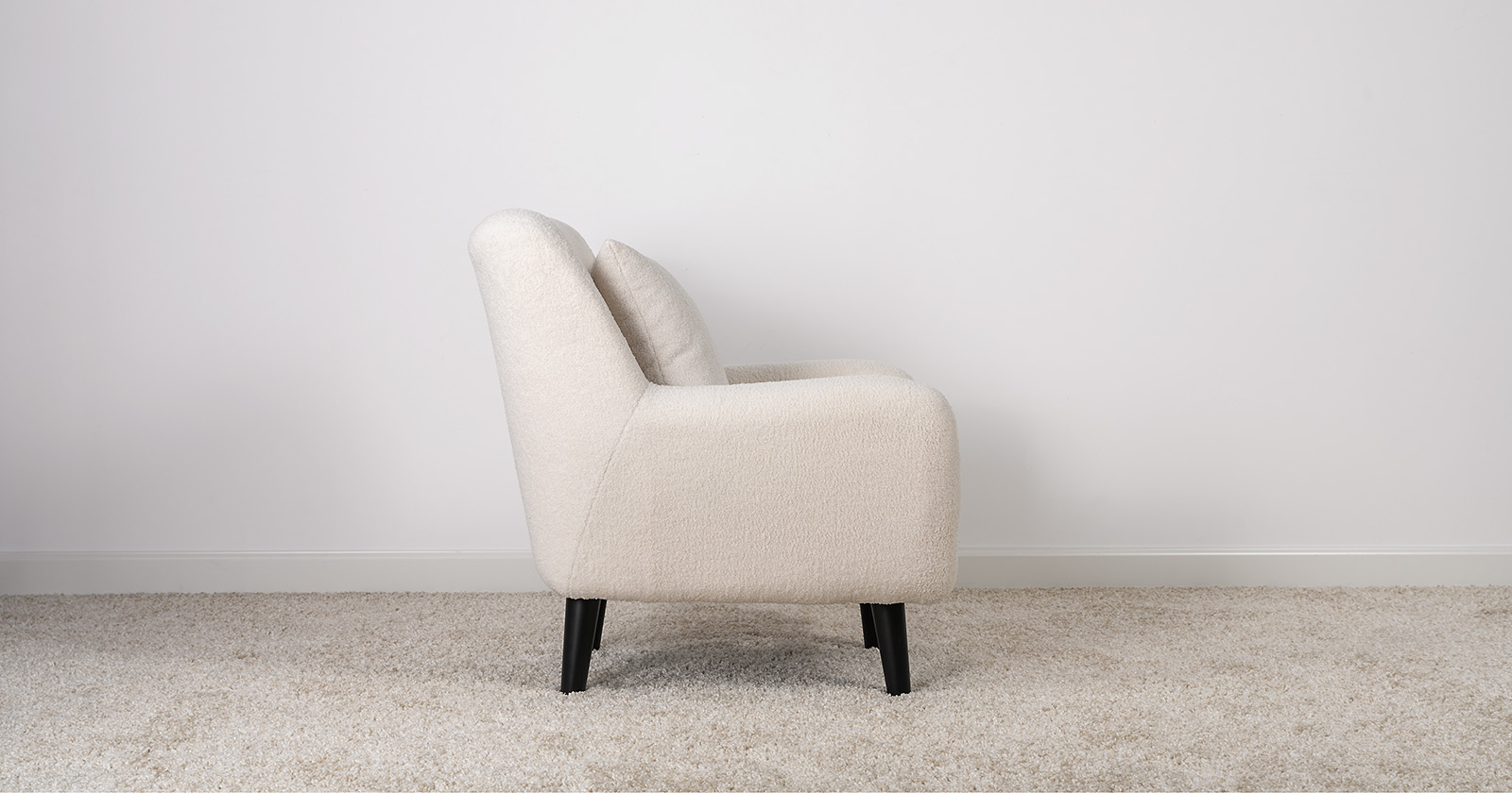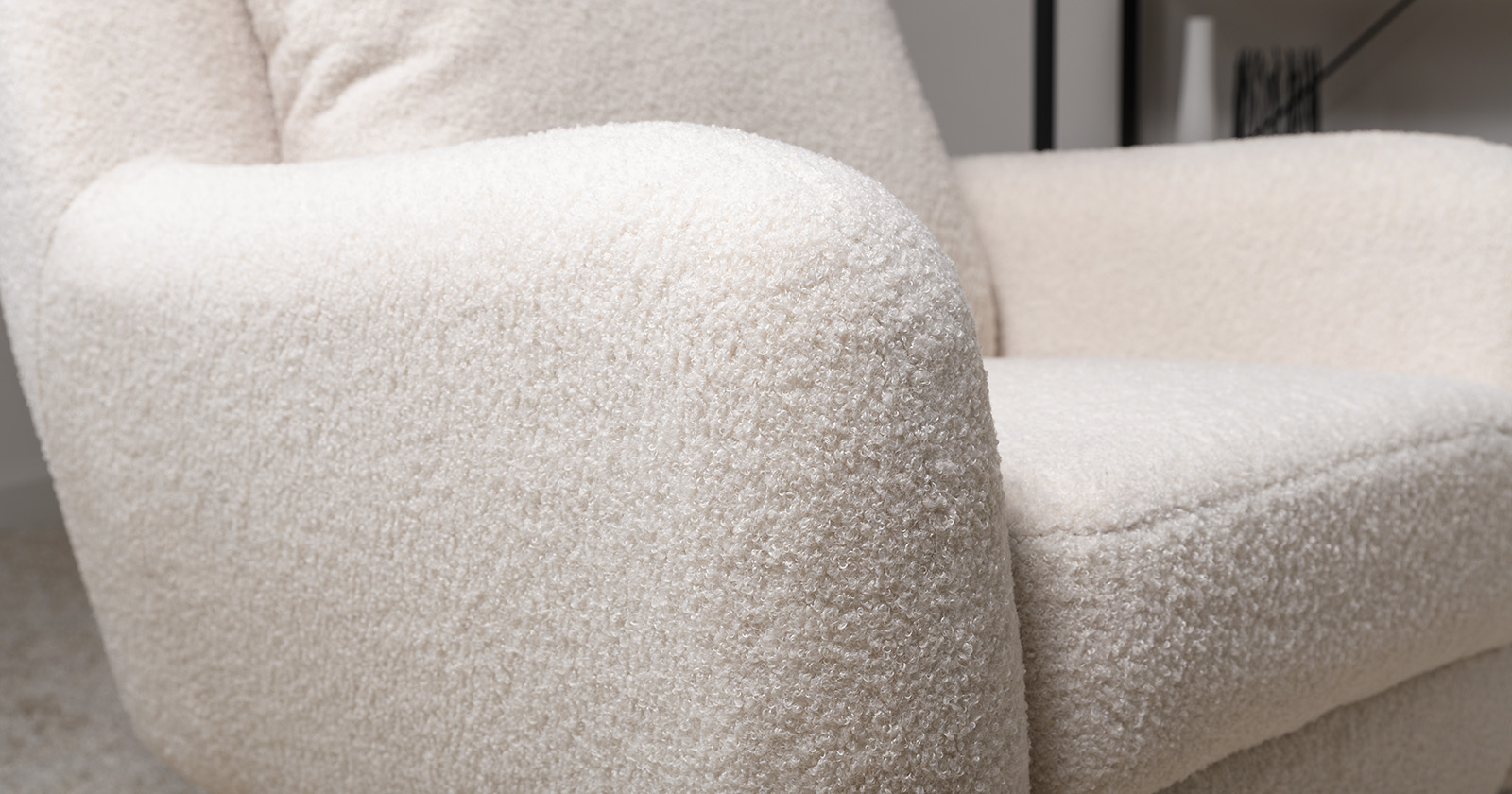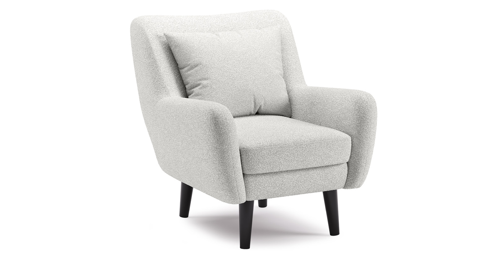 Ткань букле делает кресло особенно уютным и мягким. Приспинная подушка в цвете кресла