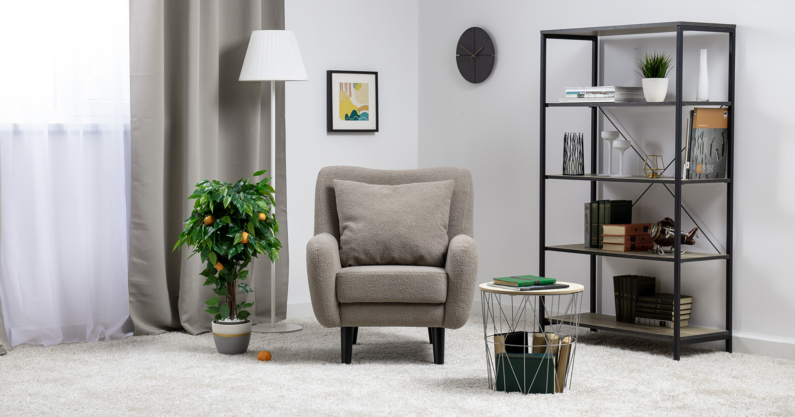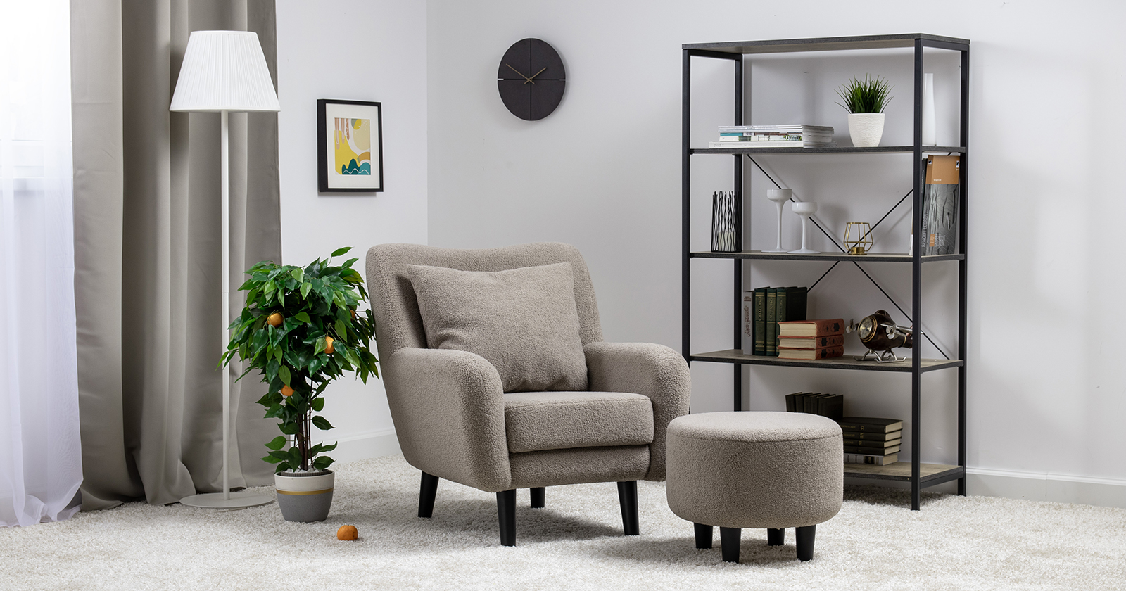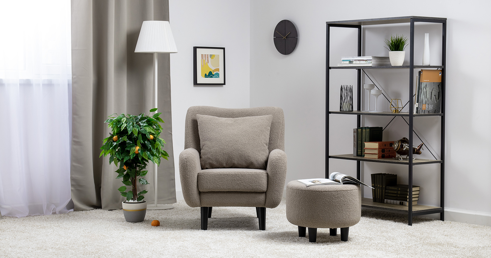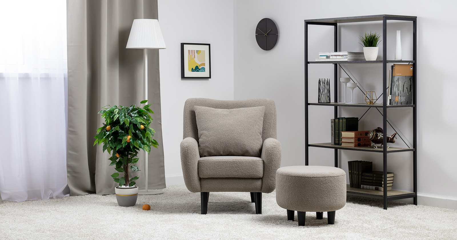 Кресло Шон станет вашим любимым местом для отдыха. Мягкое кресло с удобной спинкой даст вам расслабиться и отдохнуть. Благодаря небольшим размерам кресло подходит для многих современных квартир-студий или небольших комнат. Ткань букле делает кресло особенно уютным и мягким. Приспинная подушка в цвете кресла.