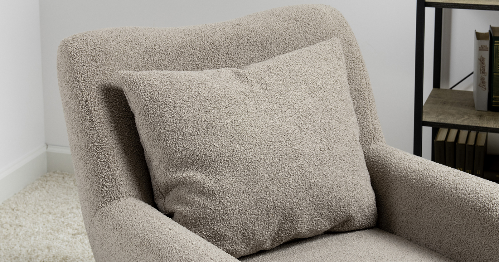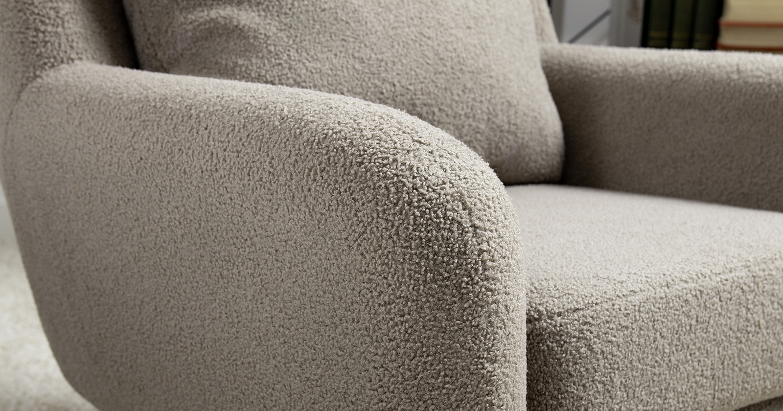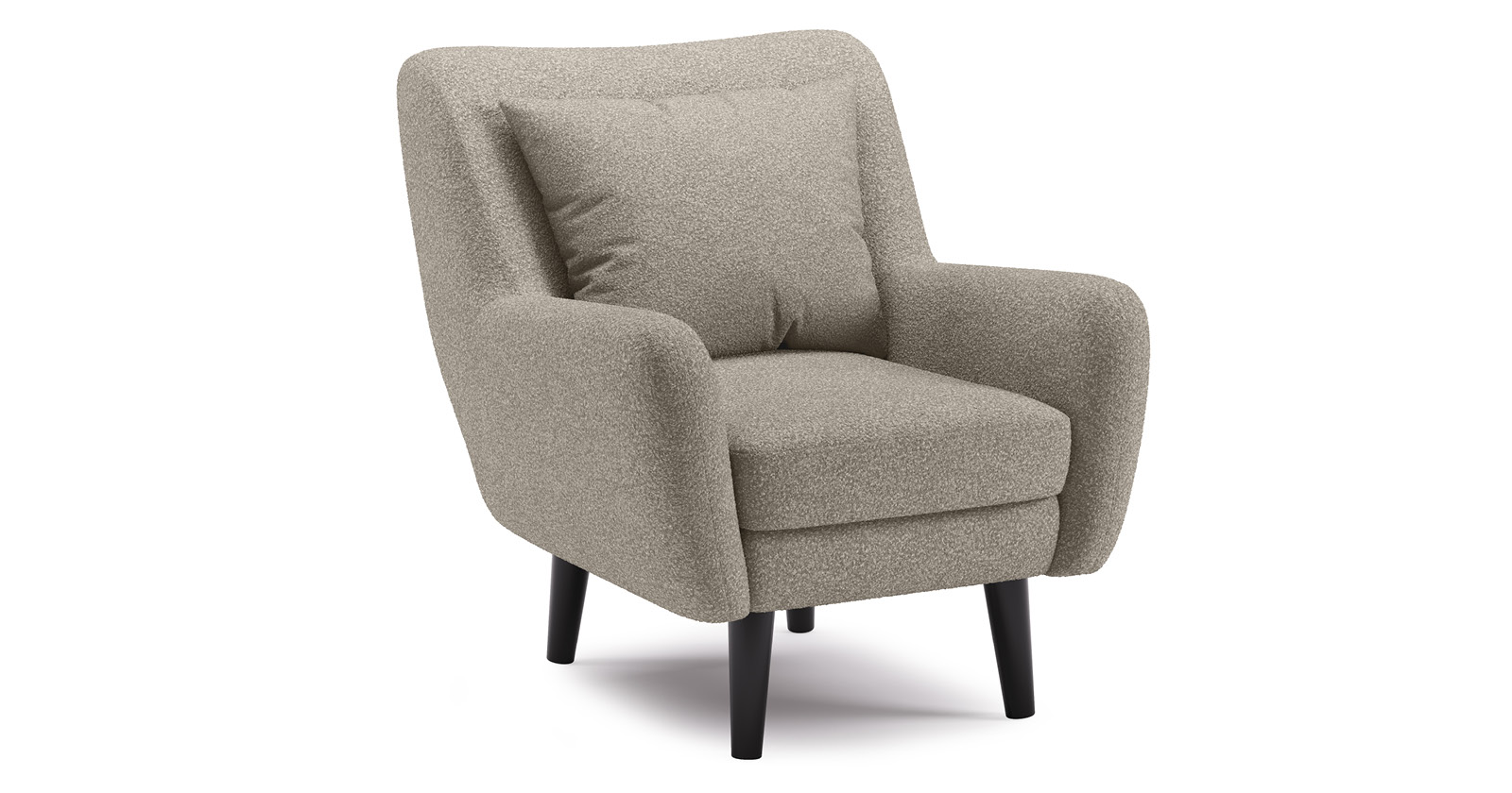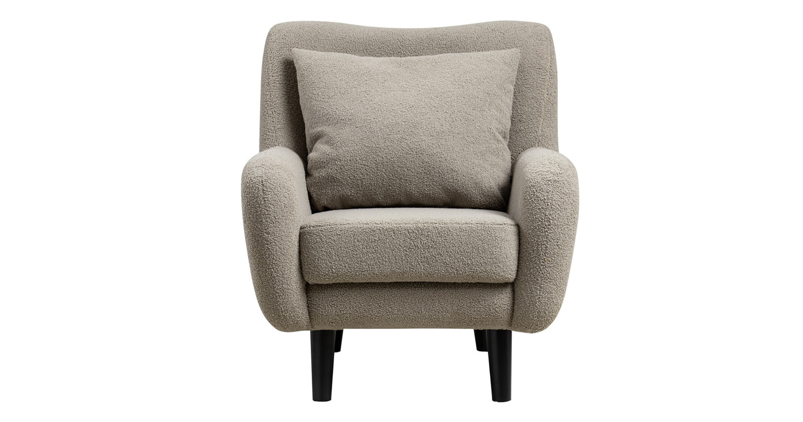 Ткань букле делает кресло особенно уютным и мягким. Приспинная подушка в цвете кресла