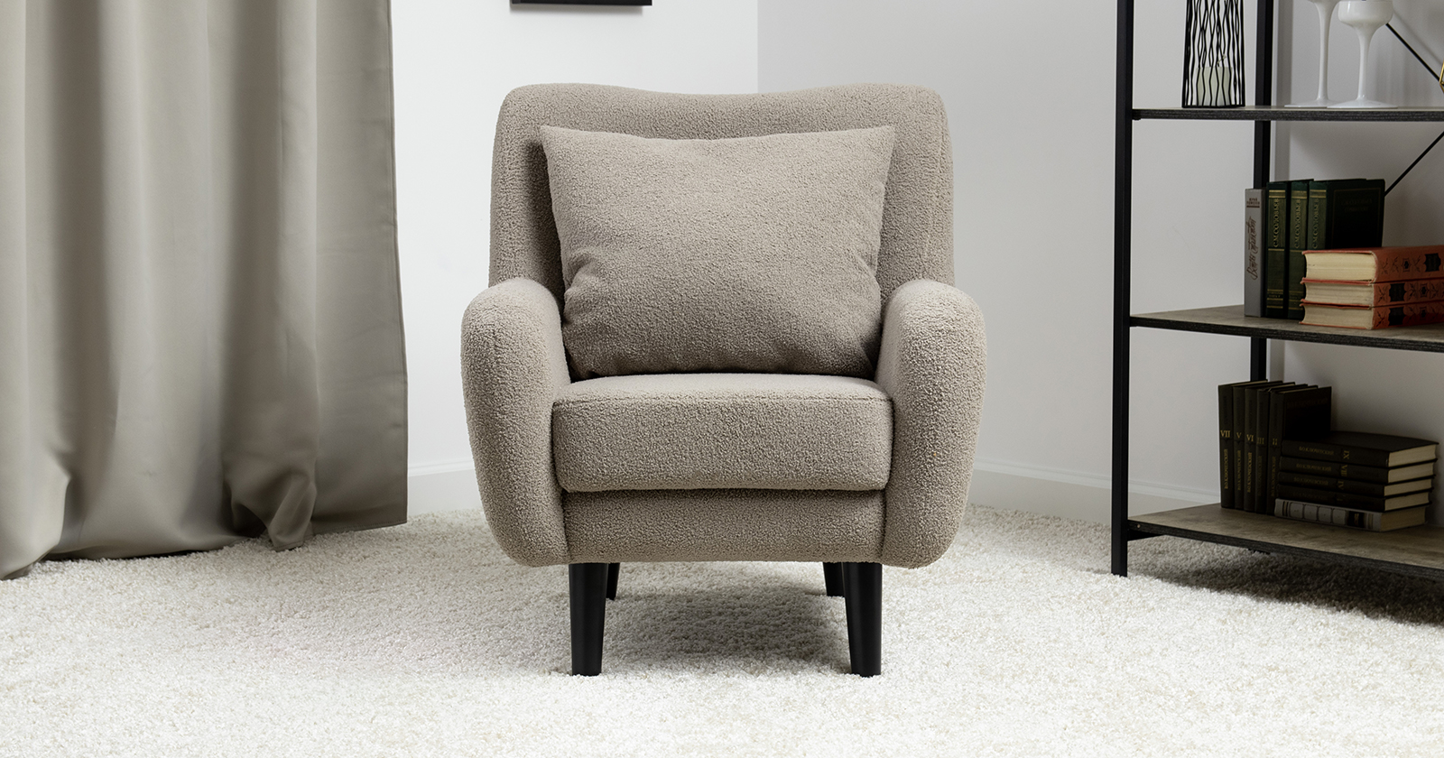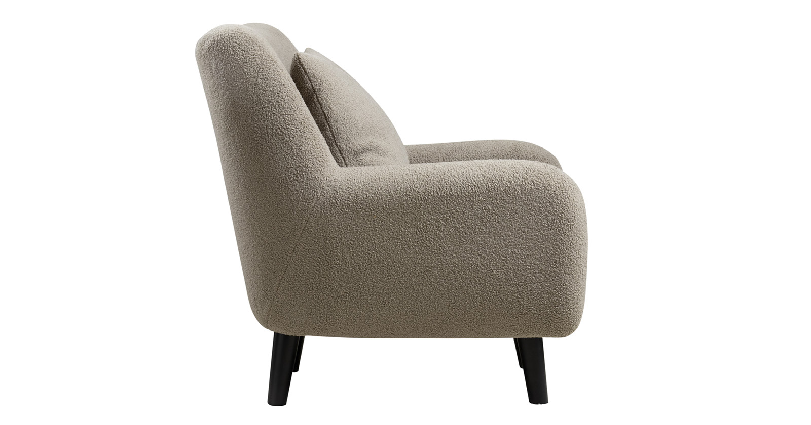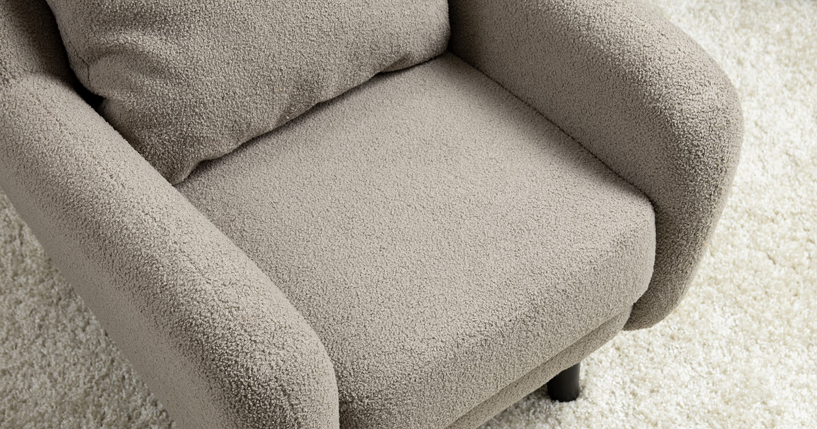 Ткань букле делает кресло особенно уютным и мягким. Приспинная подушка в цвете кресла