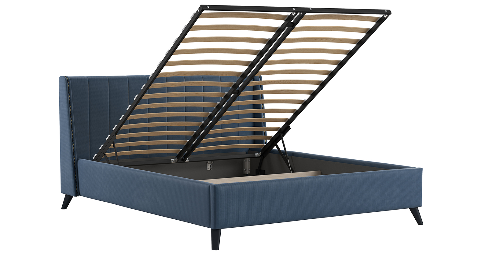 Кровать Мелисса 160 велюр серо-синий с ортопедическим основанием и подъемным механизмом