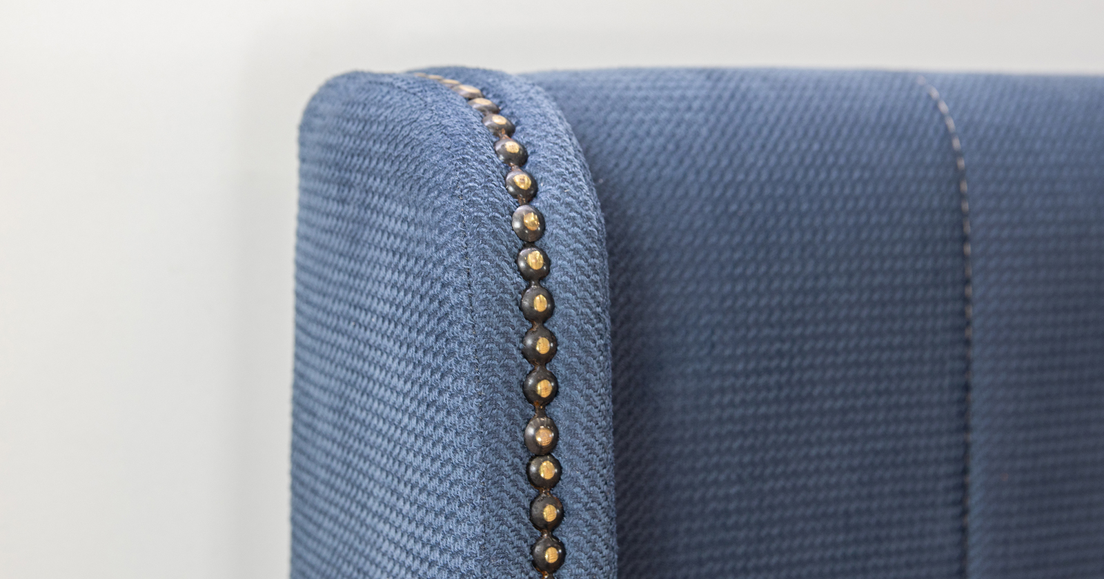 Изголовье с боковыми накладками, декорированными мебельным молдингом-гвоздиками