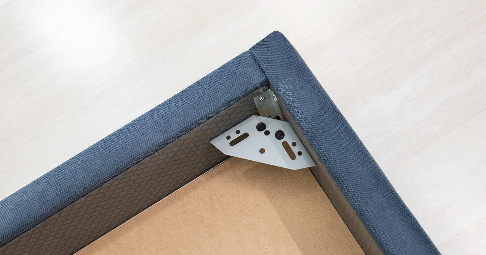 Основание кровати укомплектовано матрасодержателями. Жесткое кроватное дно из МДФ 6 мм. Задняя стенка изголовья выполнена в тех. ткани (спанбонд)