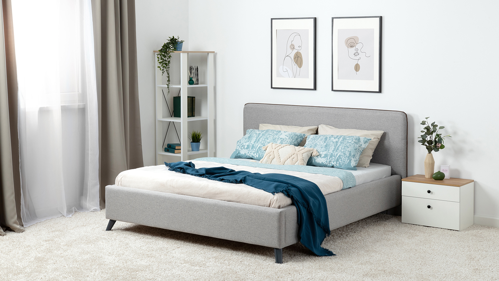 Лаконичный дизайн, гладкая и приятная на ощупь рогожка, широкий выбор пастельных оттенков, высокие опоры — модная кровать МИА порадует сторонников скандинавского стиля.