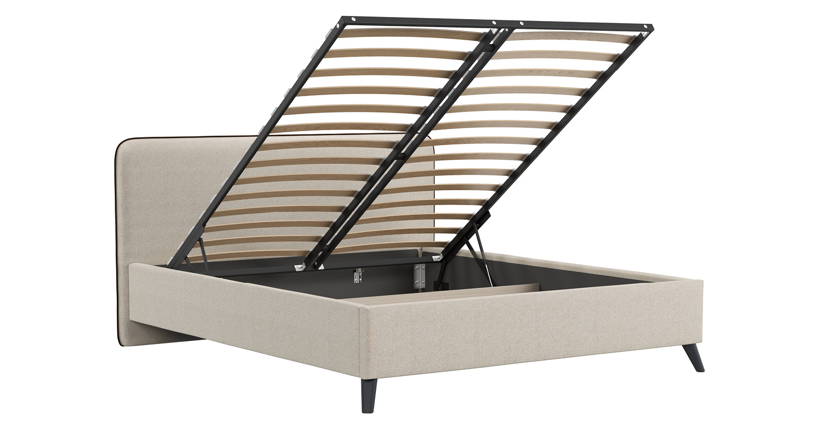 Кровать Миа 160 рогожка светло-бежевый, кант желтовато-коричневый с ортопедическим основанием и подъемным механизмом