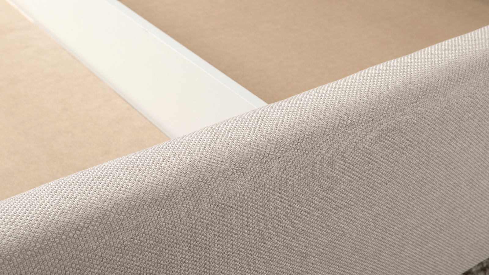Cкругленный торец изголовья оформлен контрастным кантом.
