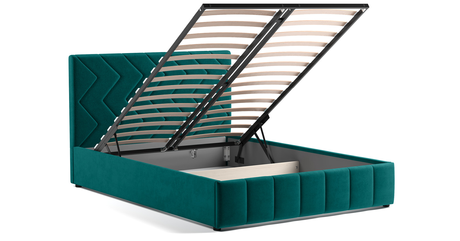Кровать Милана 160 велюр сине-зеленый с ортопедическим основанием и подъемным механизмом