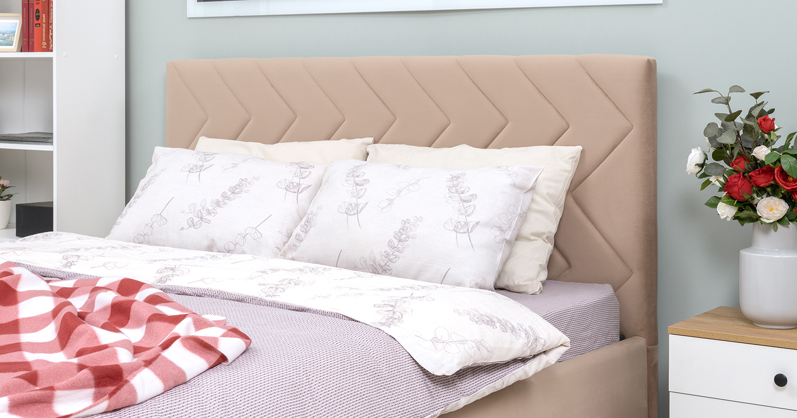 Объемная стежка на изголовье и изножье кровати