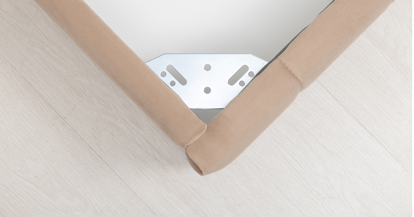Основание кровати укомплектовано матрасодержателями. Жесткое кроватное дно из ЛДСП 16 мм. Задняя стенка изголовья выполнена в тех. ткани (спанбонд).