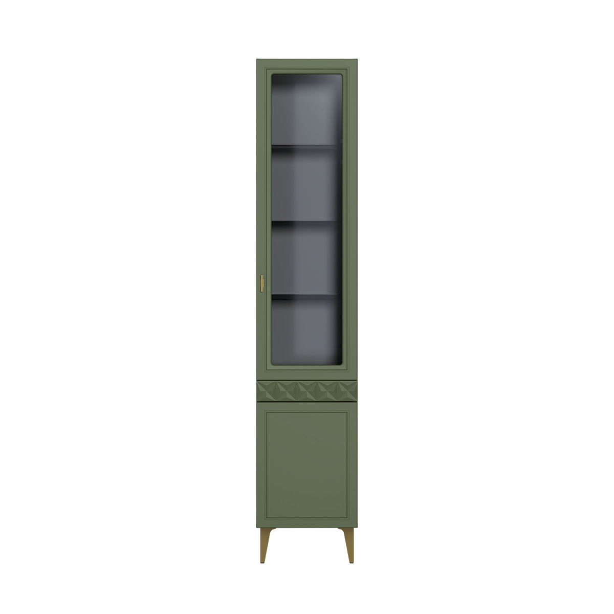 Шкаф-витрина Марион 16.397.01 дымчатый зеленый K521, олива шагрень AG 1050 ПВХ (собирается на любую сторону)